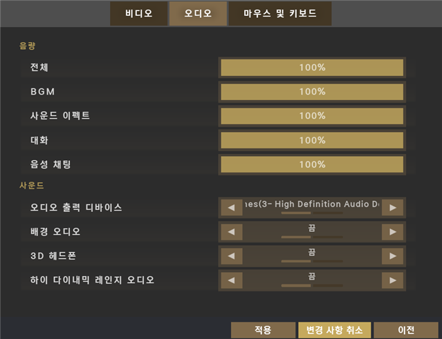 BGM 및 대화: 긴박한 교전 중 방해가 될 수 있다면 볼륨을 낮추는 것이 좋습니다.