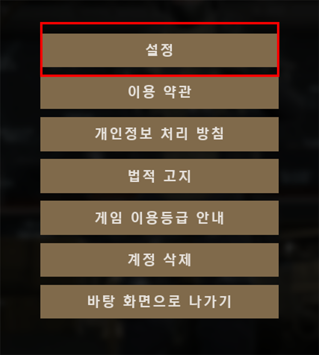 - [ESC] > [설정] 메뉴를 통해 진입할 수 있습니다.