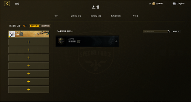 소셜: 소셜 버튼으로 친구 및 그룹 관리를 진행할 수 있습니다.