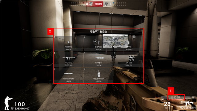 아이템 구매: 마우스를 이용해 원하는 전술무기를 클릭하면 즉시 구매가 완료됩니다.